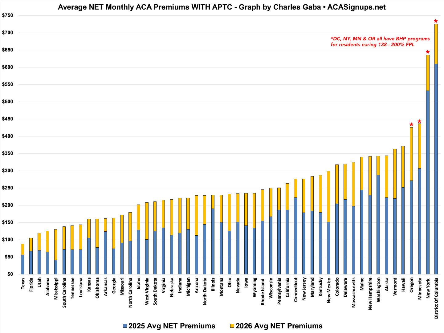 In terms of actual net premiums (again, after federal subsidies are applied), however, Texas has the lowest on average thanks to their robust Premium Alignment pricing strategy, while DC has the highest.