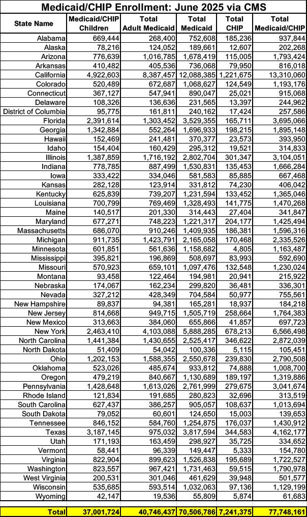 Trump Regime posts claimed June 2025 Medicaid/CHIP enrollment report: 77.7M, down 1.7M since December