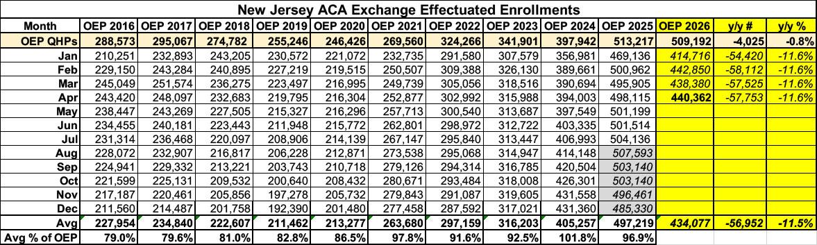 New Jersey: Effectuated ACA enrollment down 11.5% y/y; at least 57,000 have already lost coverage