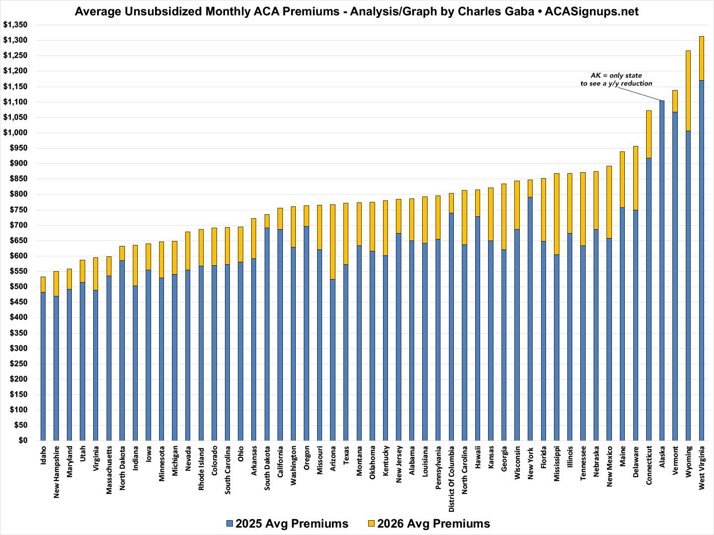 The national average will move up or down slightly as more states finalize their 2026 premium changes, but I still expect the final average to end up somewhere between 22 - 24%.