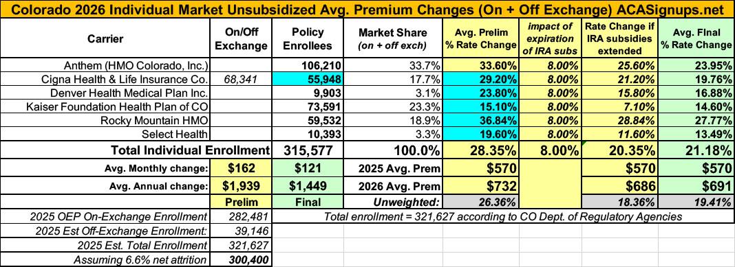 UPDATE 10/23/25: With just nine days to go before the 2026 ACA Open Enrollment Period officially kicks off, health insurance carriers in Colorado have uploaded their final, approved rate filings, which take into account several major changes/developments including the emergency infusion of state-based tax credits to partially backfill the lost federal tax credits.